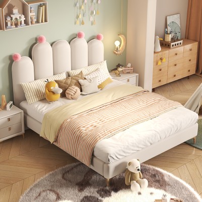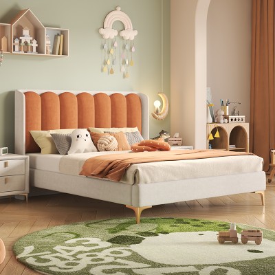 Color blocking wave backrest children's bed
