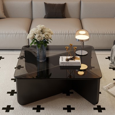 Modern Simple Tempered Glass Solid Wood Tea Table
