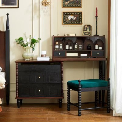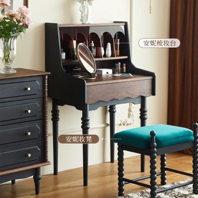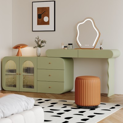 A vintage-style solid wood dressing table in light green, featuring an elegant design