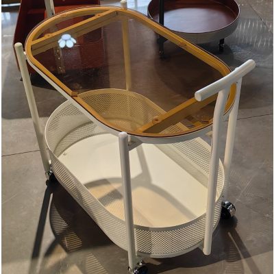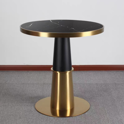 Coffee table made of stainless steel wire drawing and color - plated glazed material