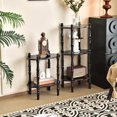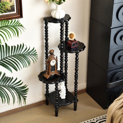 Solid wood side table with ash wood grain pattern and calabash-shaped legs