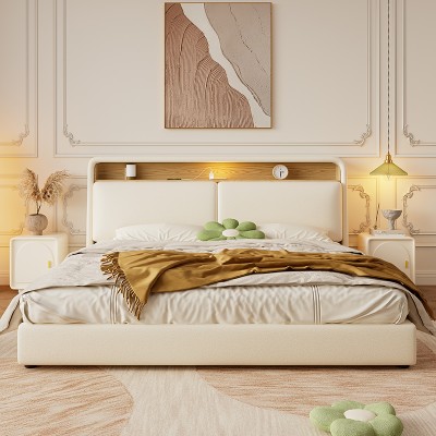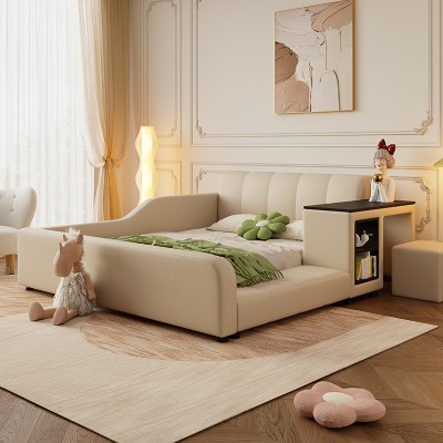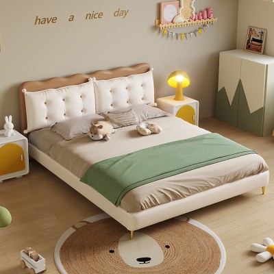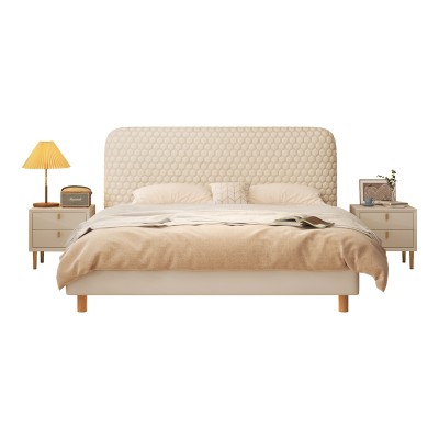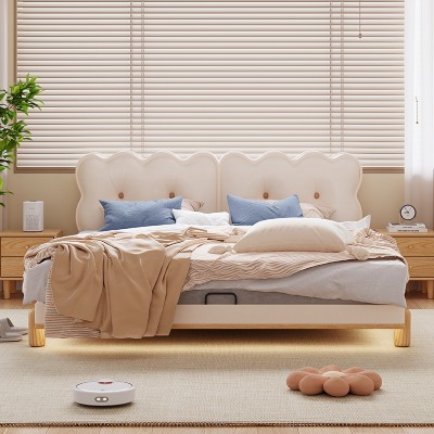 Cream-style French cat-scratch resistant leather fabric bed with a solid wood frame, presenting a sense of luxury