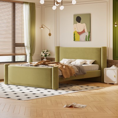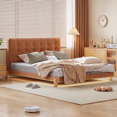Cream-style French baby velvet fabric bed with a solid wood frame, featuring a touch of luxury