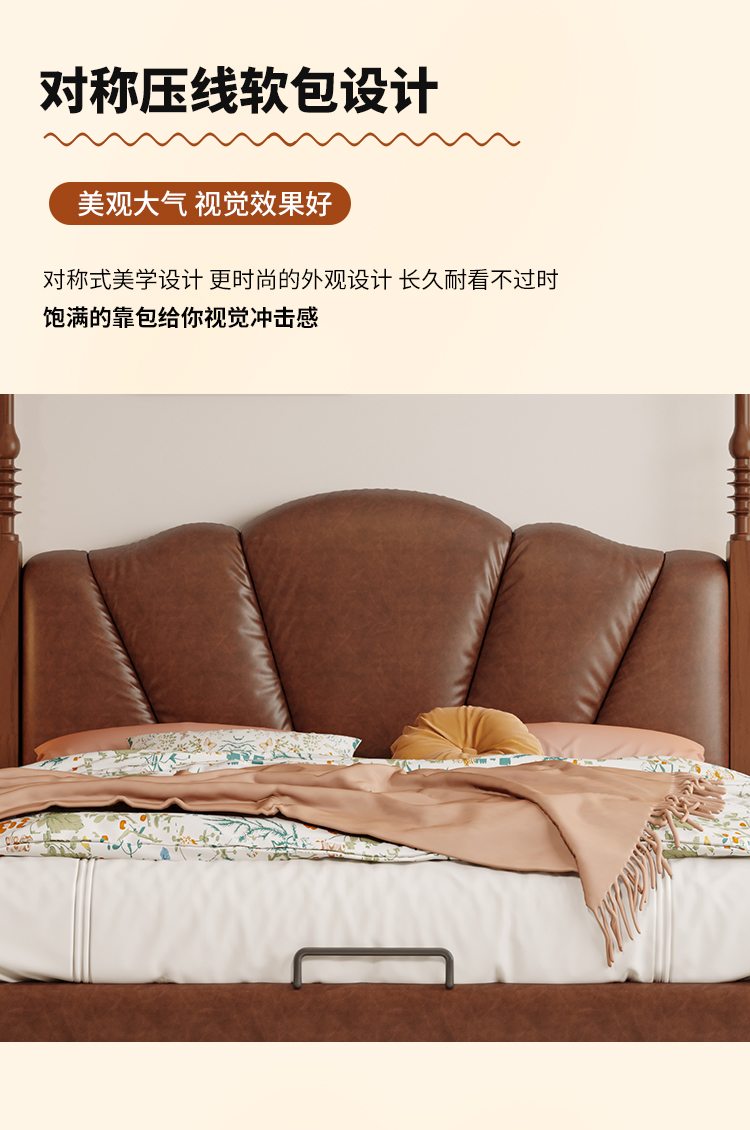 Product Name:Medium-century style oil-waxed leather pine wood silent bed board, high-quality and elegant solid wood bed