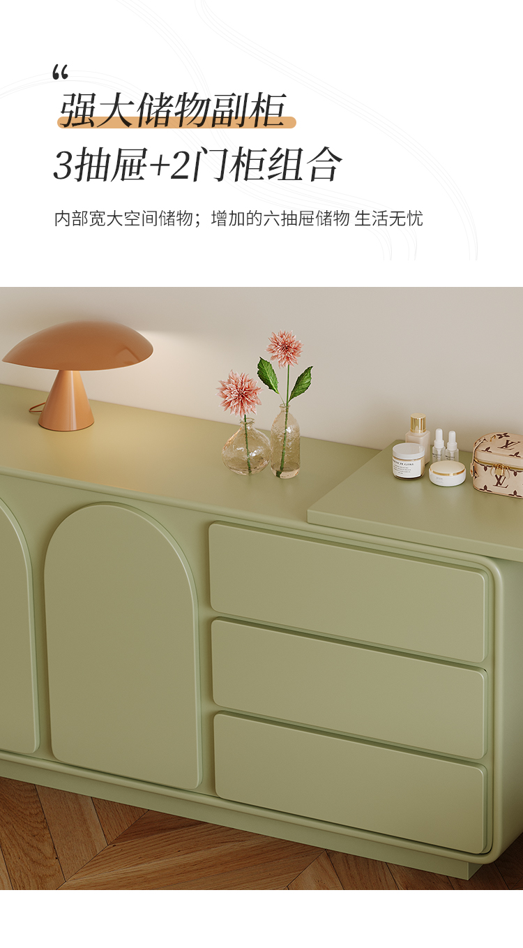 Product Name:A vintage-style solid wood dressing table in light green, featuring an elegant design