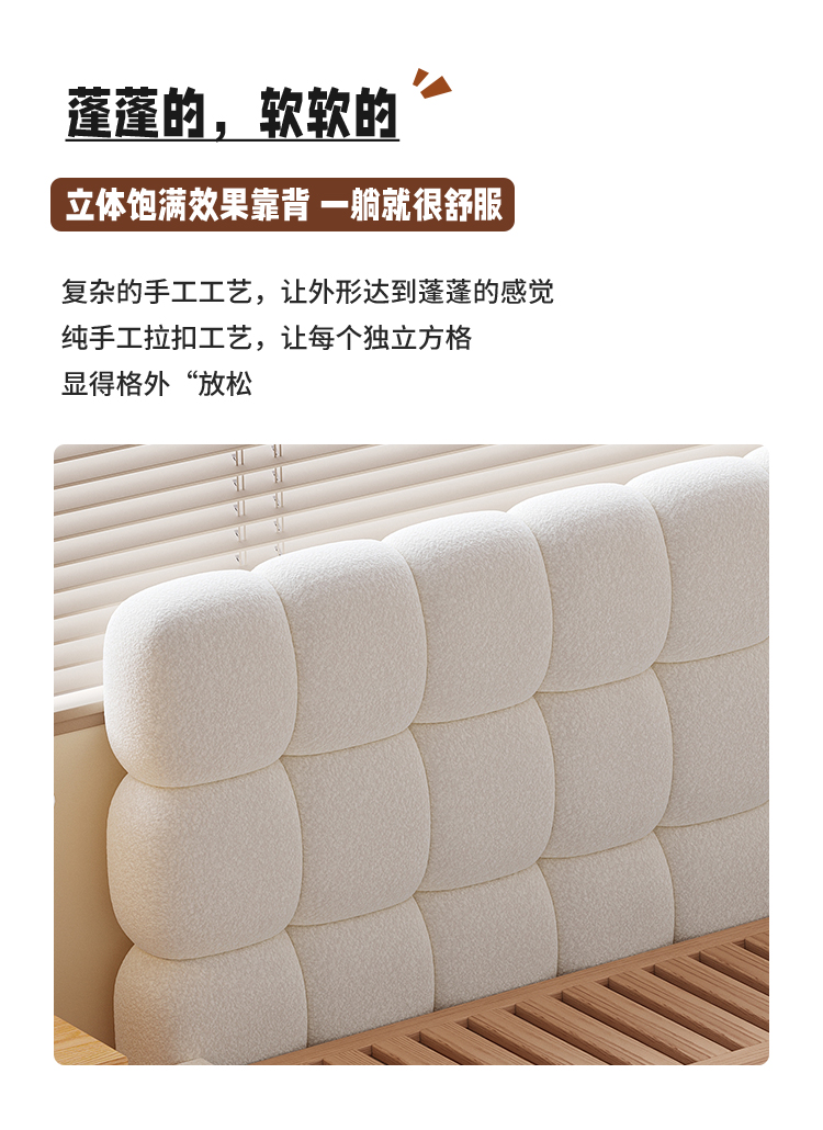 Cream-style French lamb wool fabric bed with a solid wood frame, showcasing a light luxury style